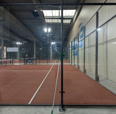 Nous intervenons exclusivement sur les surfaces vitrées de terrains de padel, avec une méthode adaptée aux contraintes sportives :