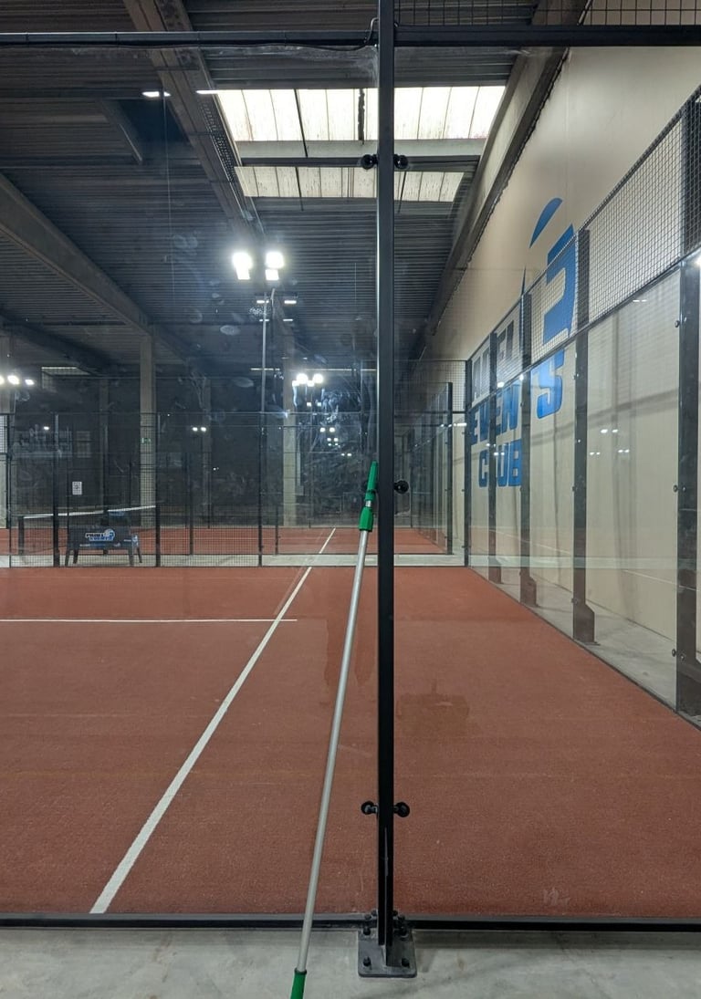 Un nettoyage de vitres pensé pour le padel. Rien d’autre.
